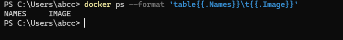 명령어를 실행하면 Names 와 IMAGE 항목을 탭(\t)으로 구분하여 보여준다.